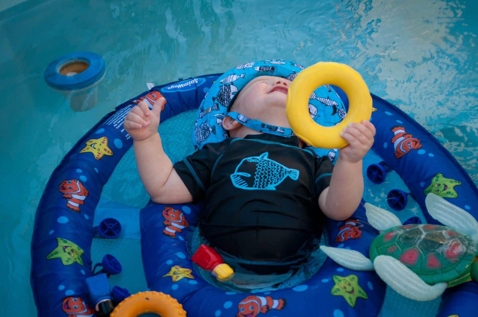 This is the floaty toy we got for Jackson at Walmart. Jackson LOVES the water but sometimes gets a little out of hand because he's constantly trying to dive into it and drink it (we sense an awesome wakeboarder in the near future)